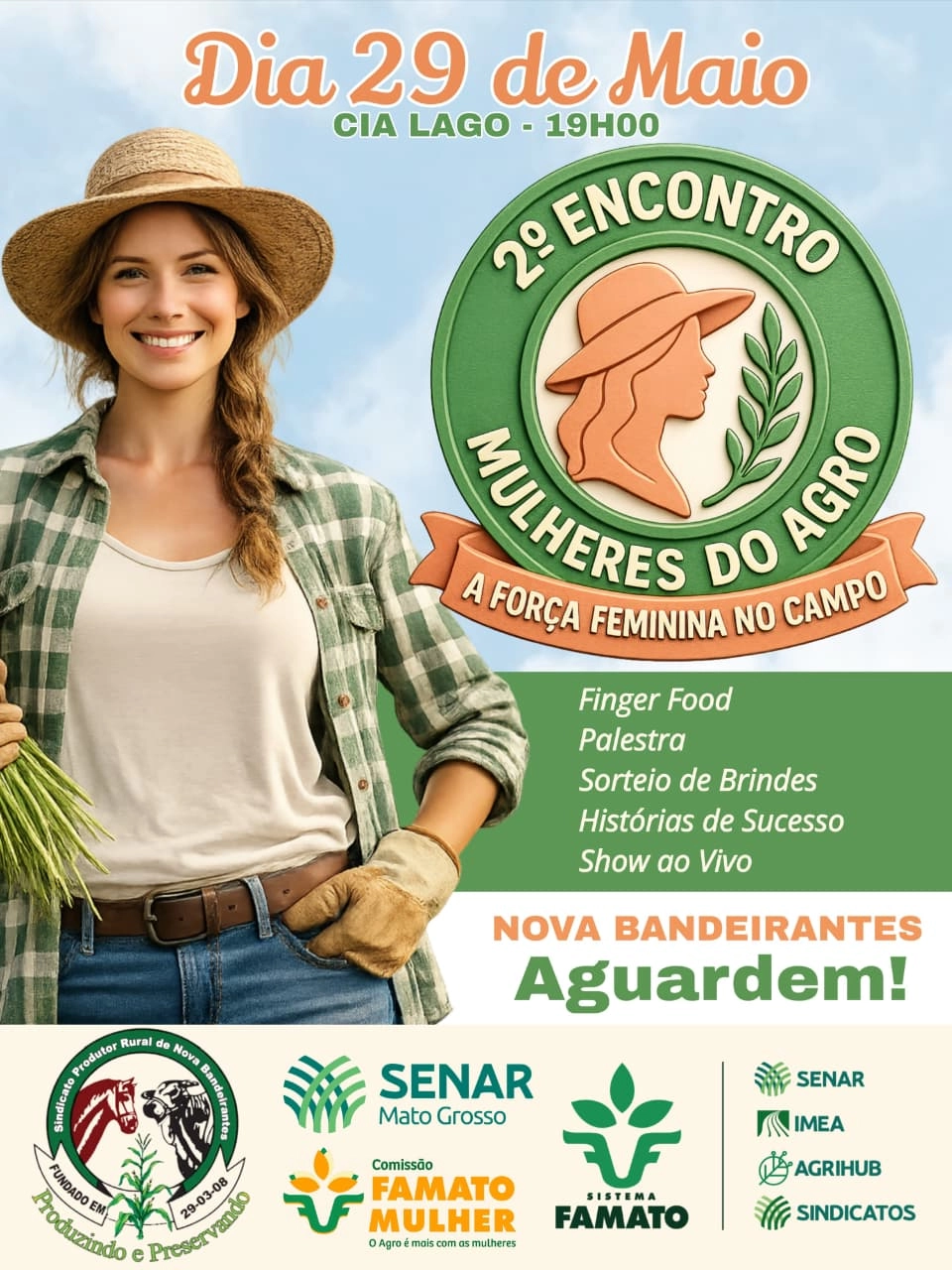 NOVA BANDEIRANTES – A força que move o campo tem rosto, voz e determinação. No próximo dia 29 de maio, Nova Bandeirantes será o palco de um evento dedicado exclusivamente àquelas que transformam o agronegócio da nossa região: o 2º Encontro Mulheres do Agro – A Força Feminina no Campo.